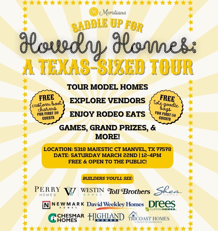 Tour model homes, explore vendors, enjoy rodeo eats, games, prize, and more at our Howdy Homes Tour Event!